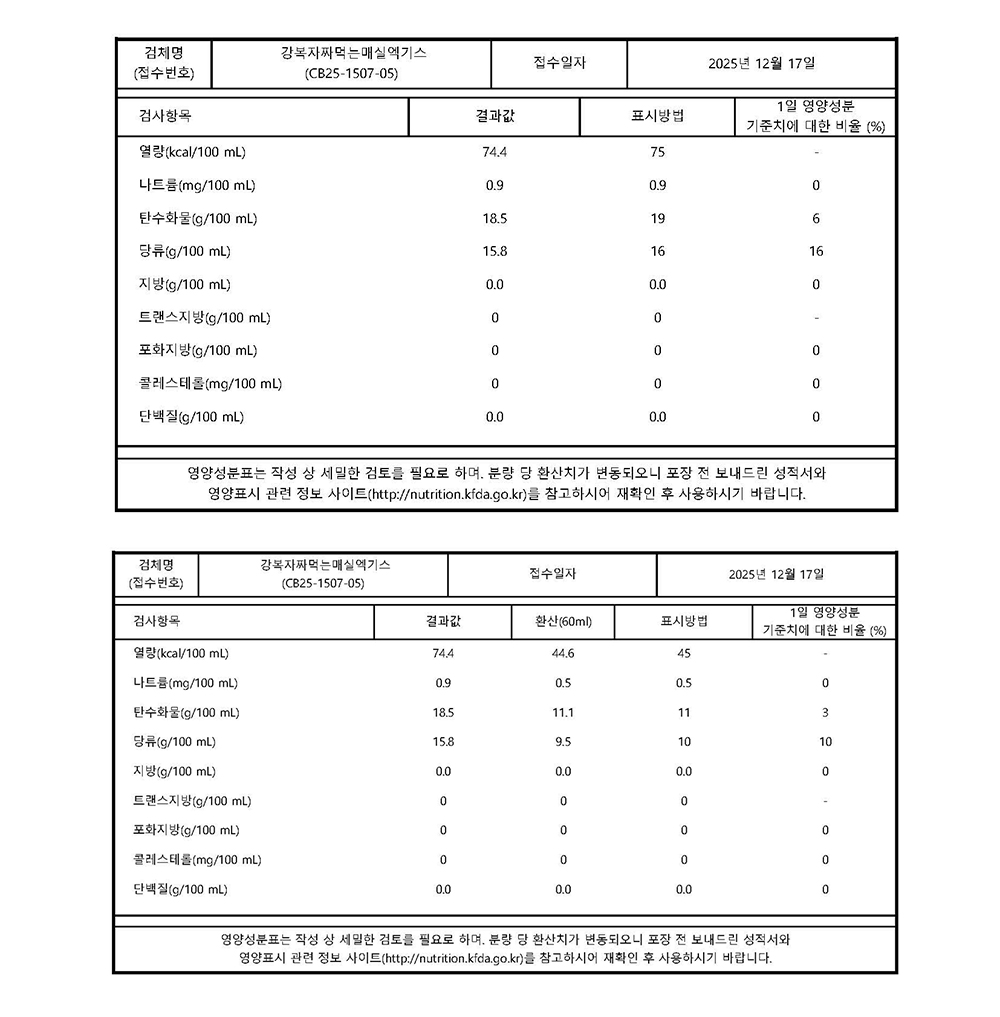 ¿øÀç·á¸í : ¸Å½Ç¿¢±â½º25%(±¹»ê,57BrixÀÌ»ó, Çϵ¿¸Å½Ç 3³âÀÌ»ó¼÷¼º),Á¤Á¦¼ö